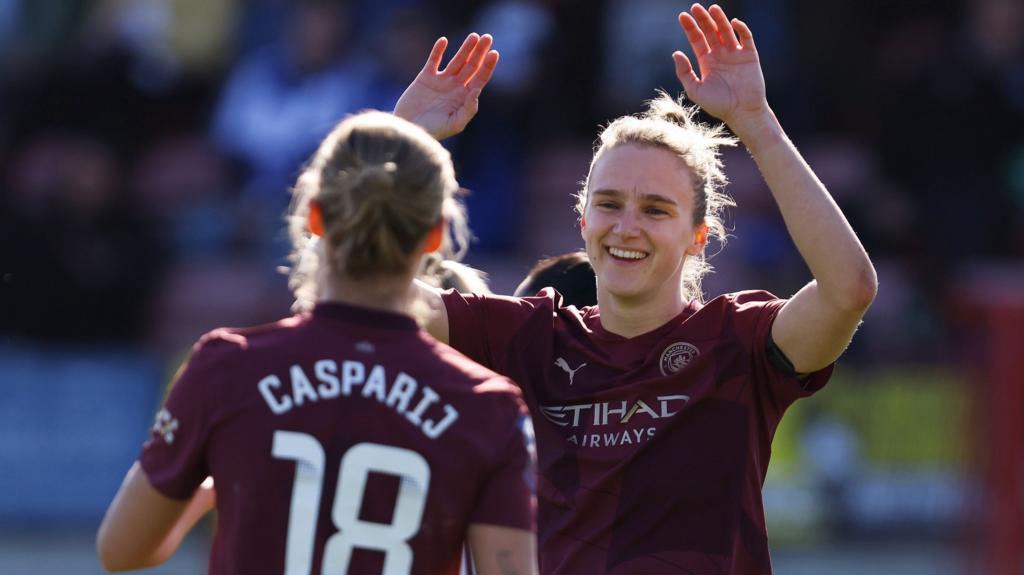 However for all of Brighton’s probing and City’s holding on, it was substitute striker Vivianne Miedema who extended the visitor’s lead to two in the 90th minute.