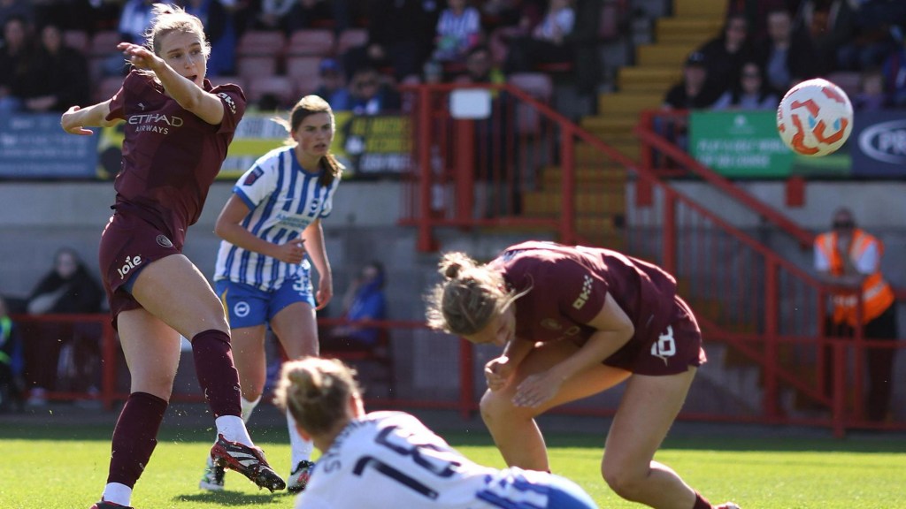 Brighton’s squandered chances prior came from a shot fired wide from Nikita Parris after Fran Kirby dispossessed City’s Yui Hasegawa, and an underwhelming strike from Pattinson following a swift Albion move.