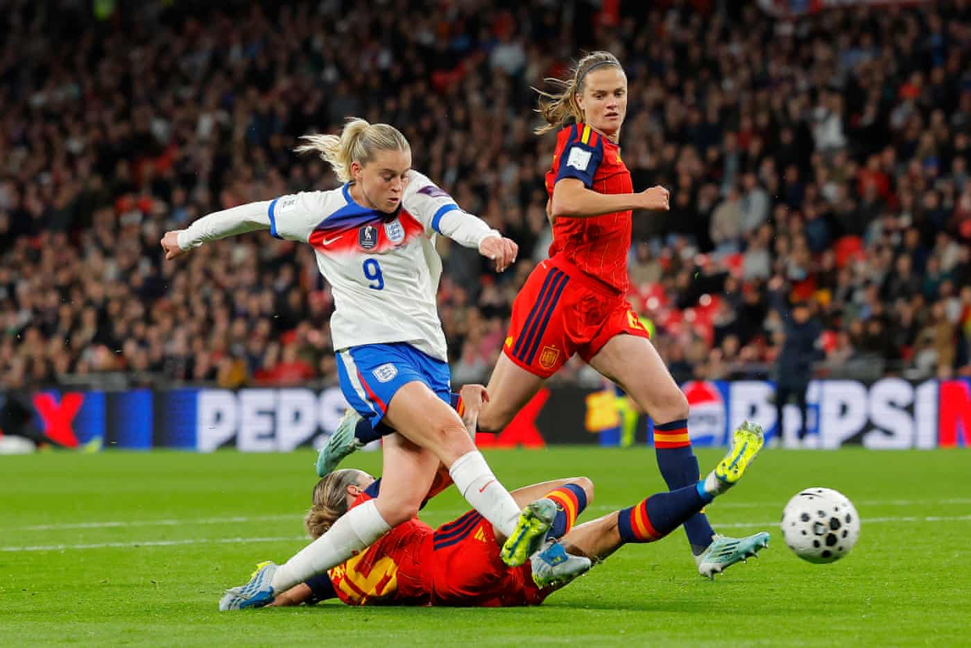 Sarina Wiegman’s England surrendered possession to Spain but ensured they won the fight, with the Lionesses defending their one-goal lead to seal all three points in a crucial World Cup qualifier at Wembley Stadium.